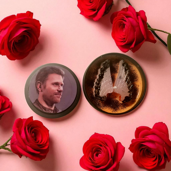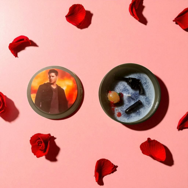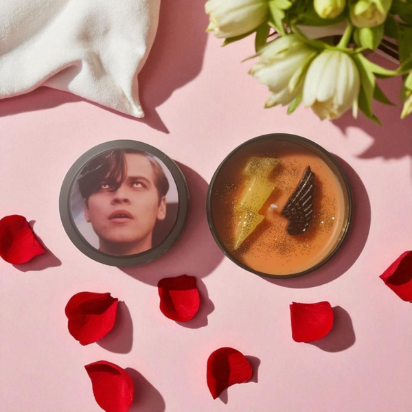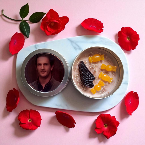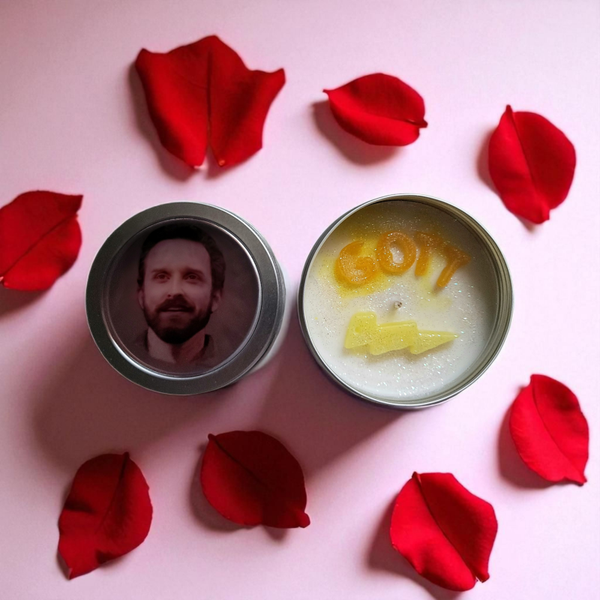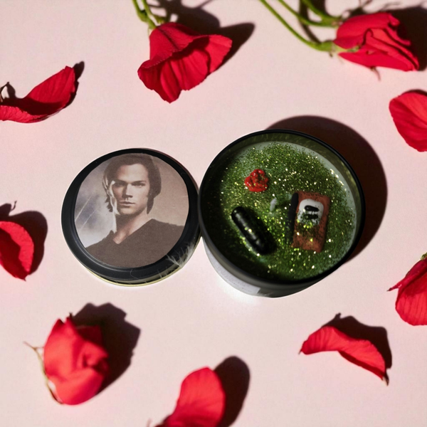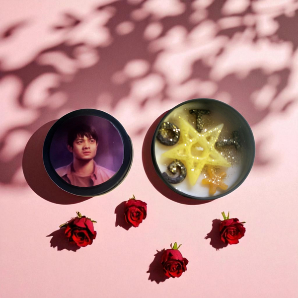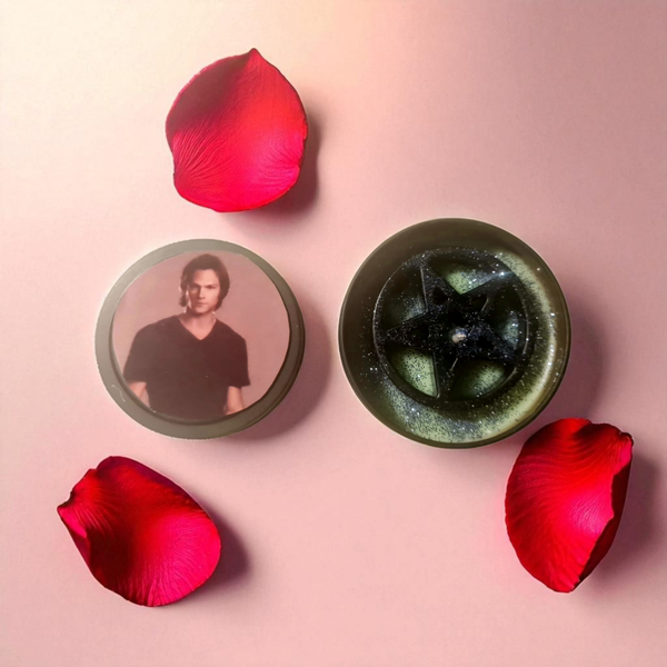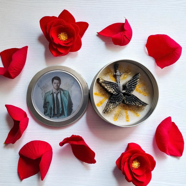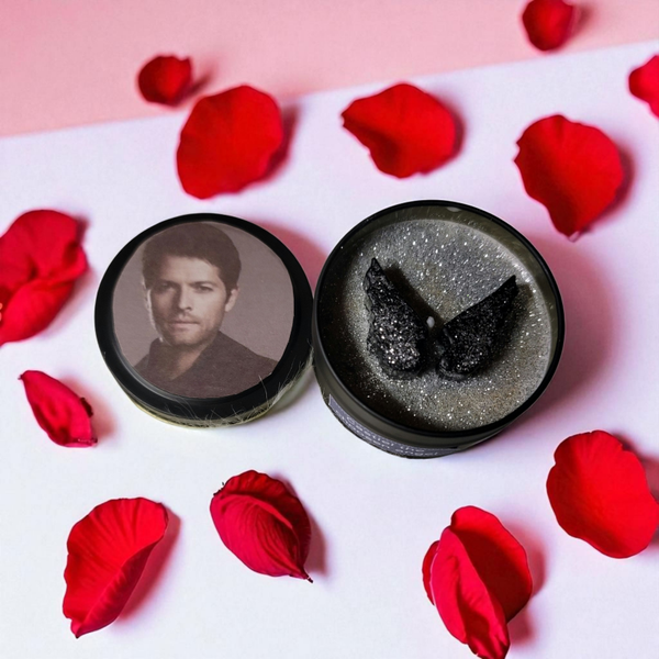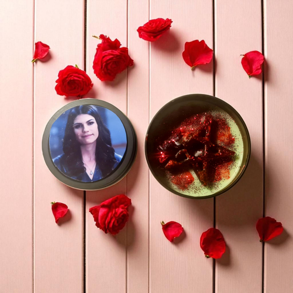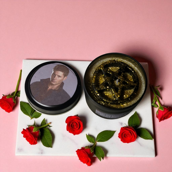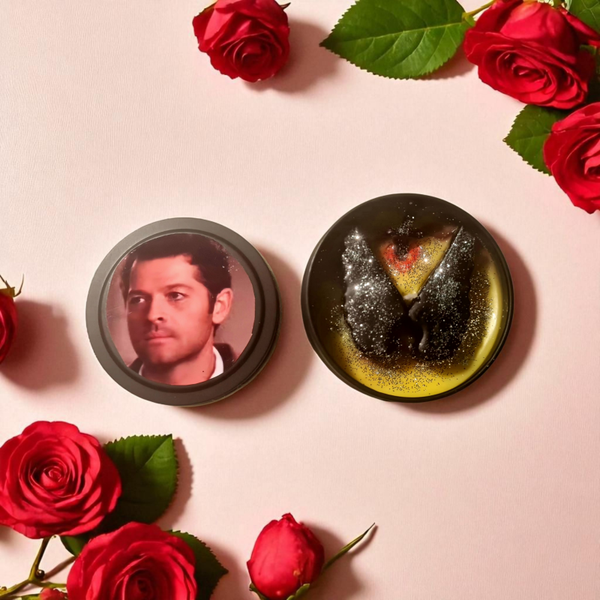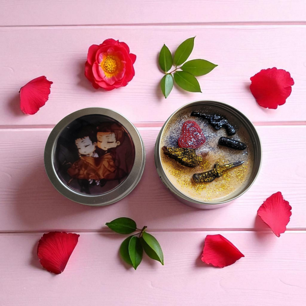 Die Kerze selber ist aus Sojawachs mit Duft, der zum Charakter passt (oder nach Wunsch). Farbe nach Wunsch mit Charaktertypischer Dekeration, aus Paraffinwachs ,mit oder ohne Glitzer.