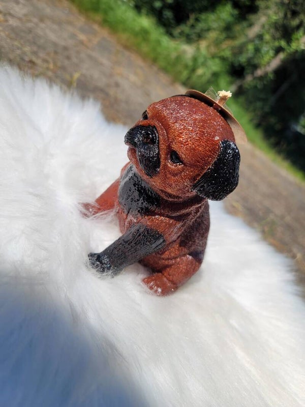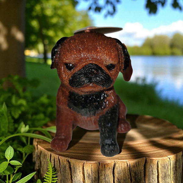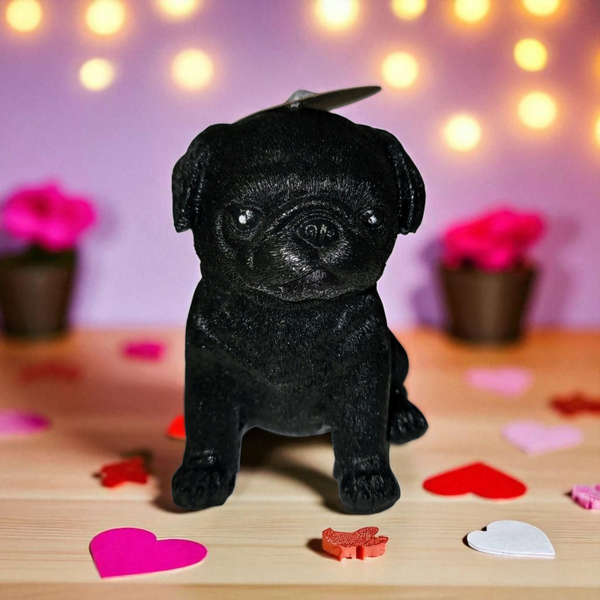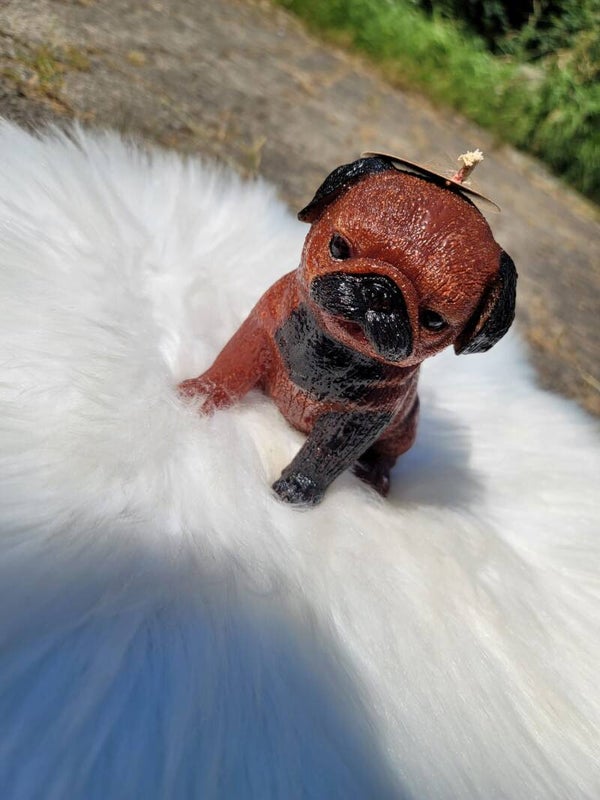 Diese einzigartige Kerze in Form eines Mops es, wird handbemalt.