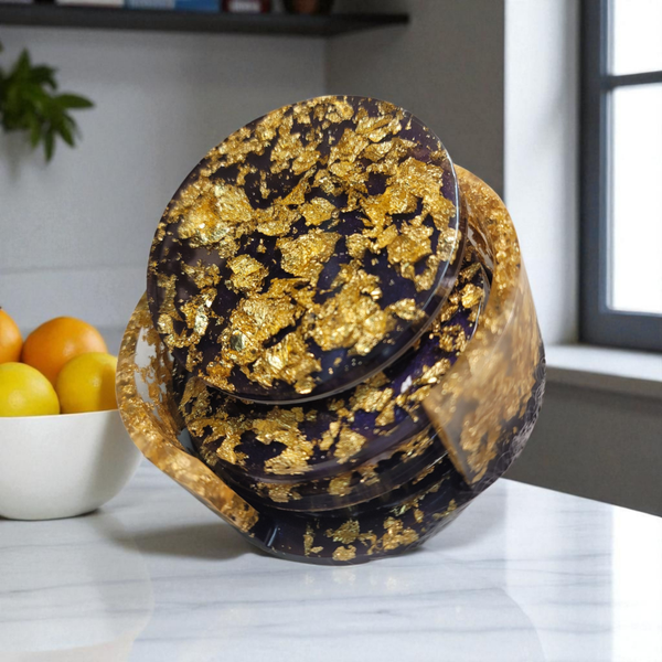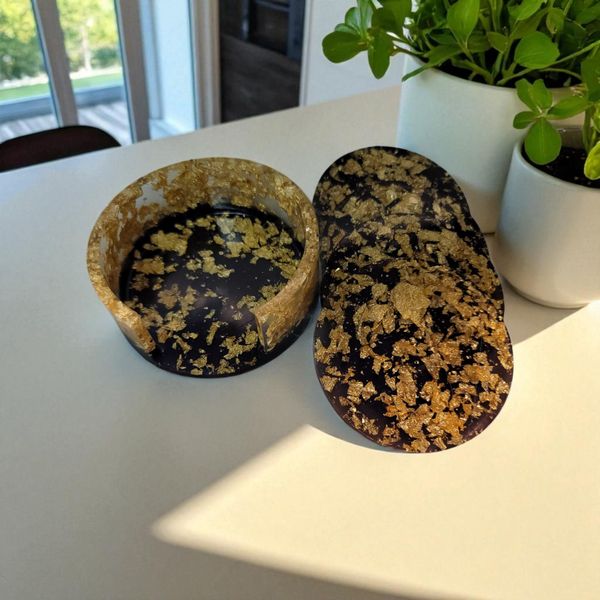 4er Set Untersetzer mit Aufbewahrungsschale