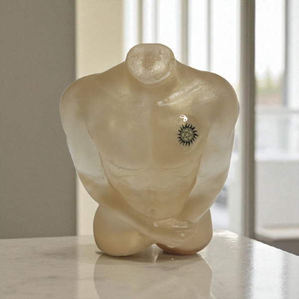 Dieser fast perfekte Männerkörper wurde mit demTattoo versehen und dem Handabdruck von Castiel.