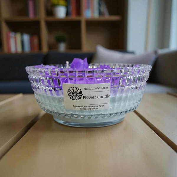 Diese Kerze besteht aus Sojawachs mit Farbe, unten drin.